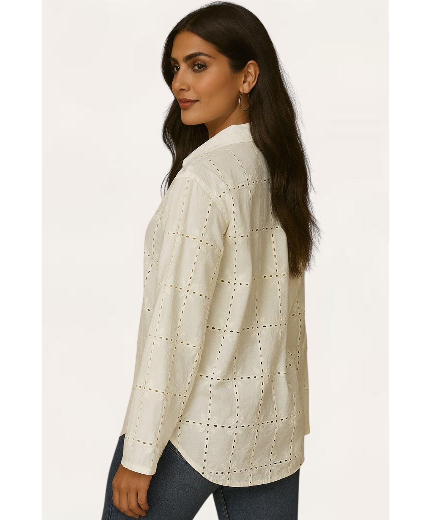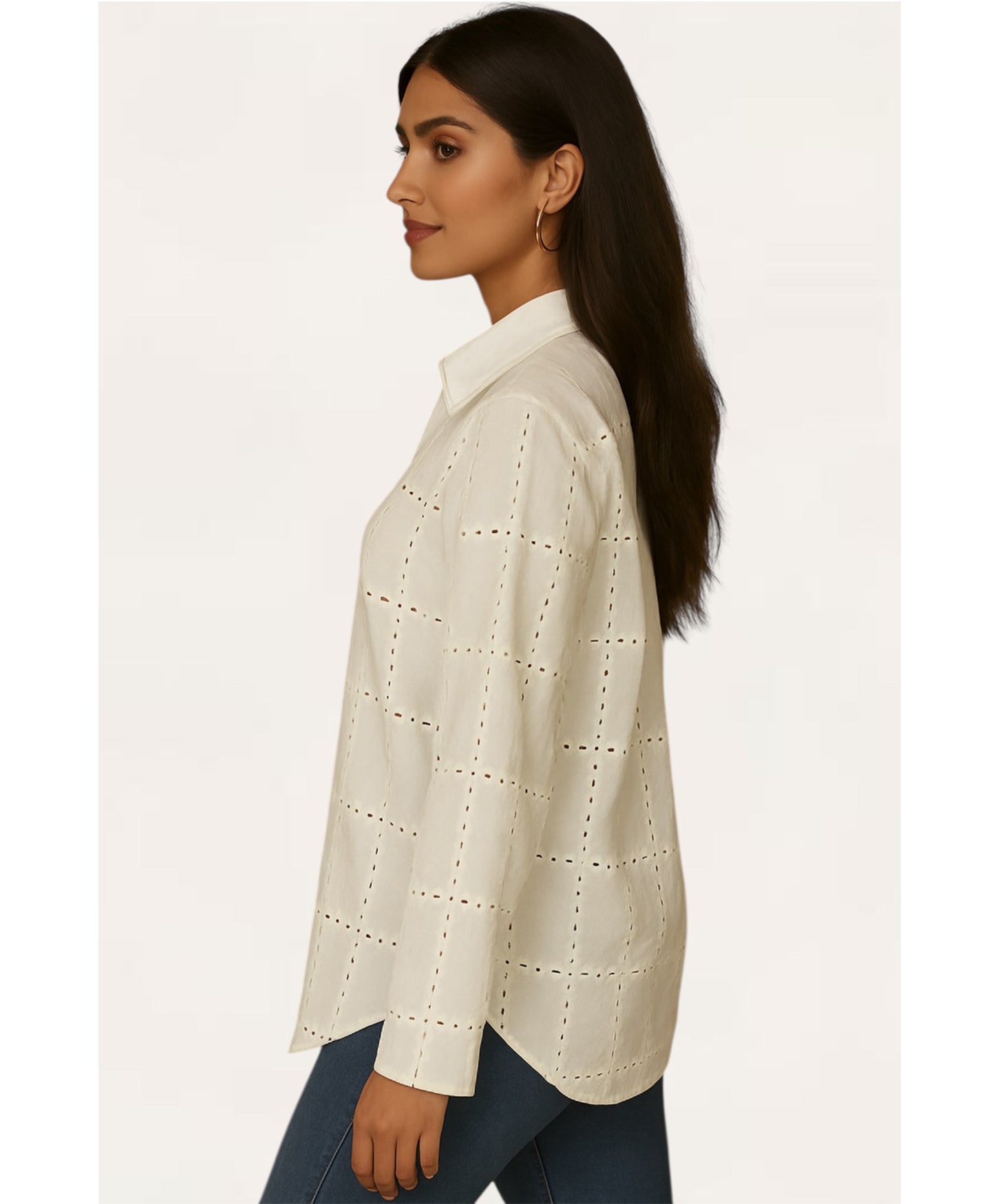 Effortless charm in timeless white A classic embroidered shirt that’s as versatile as it is elegant.
